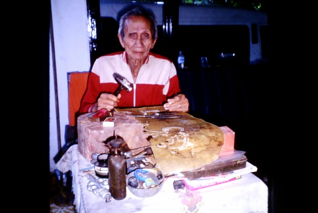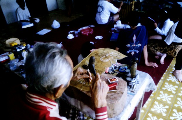 of perforations, which Pak Rajeg is making with a hammer and chisel. Apparently