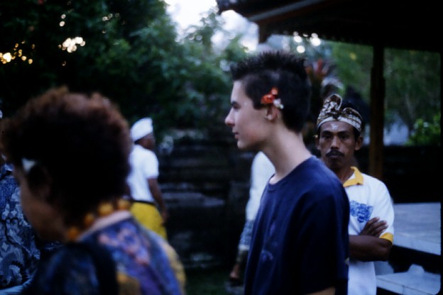 ready to leave the temple, together with Komang (right) and his girlfriend,