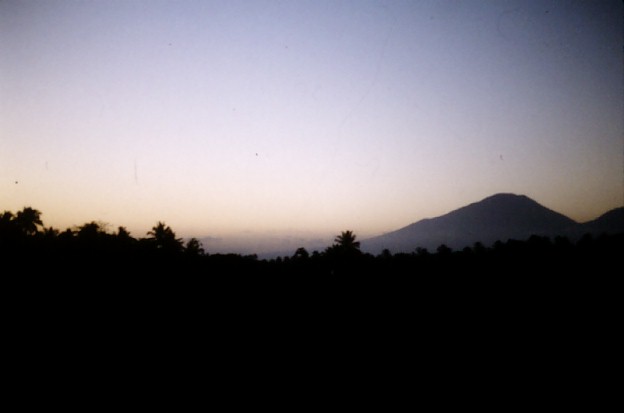 We stopped to take this picture of the sacred mountain Gunung Agung in the dusk as we drove