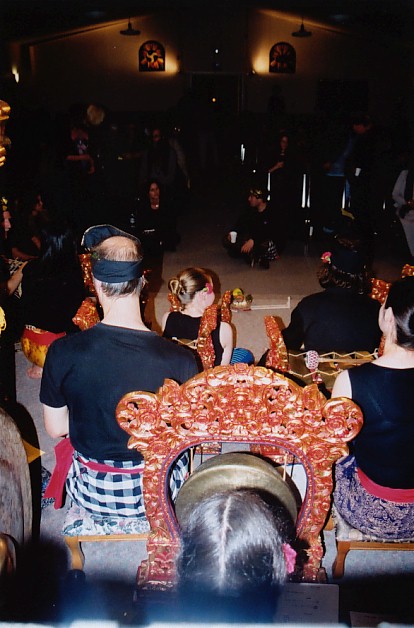 behind the gongs in mid-performance! A rare shot of Gretchen's head