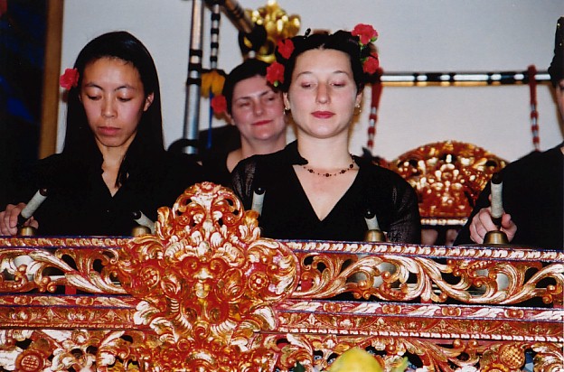 Kristin and Cecile on reyong, with Greg on timekeeping in the